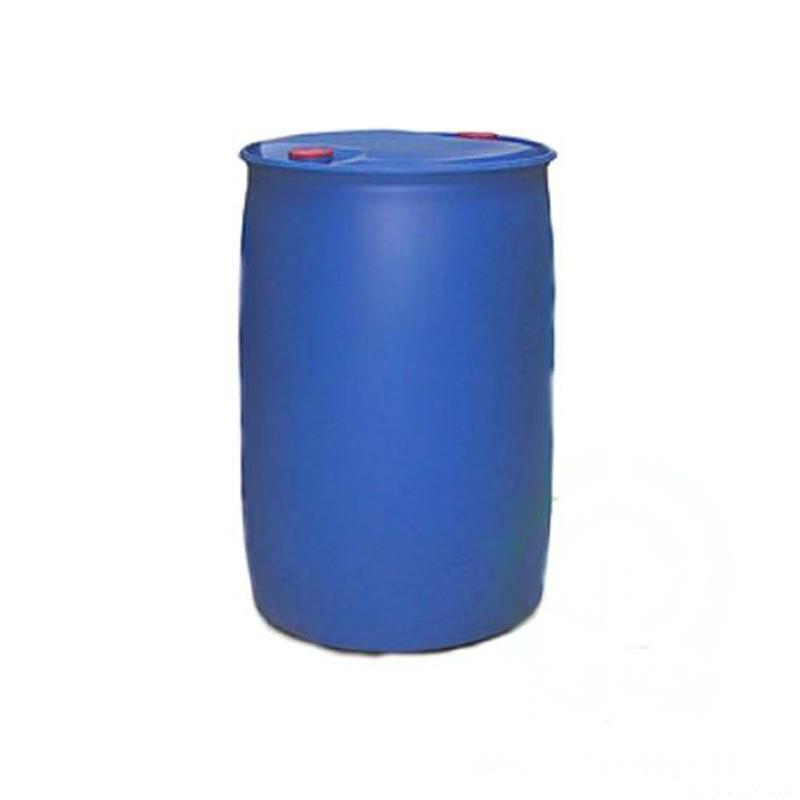 Пластмассовая бочка 220 литров с двумя пробками синего цвета.