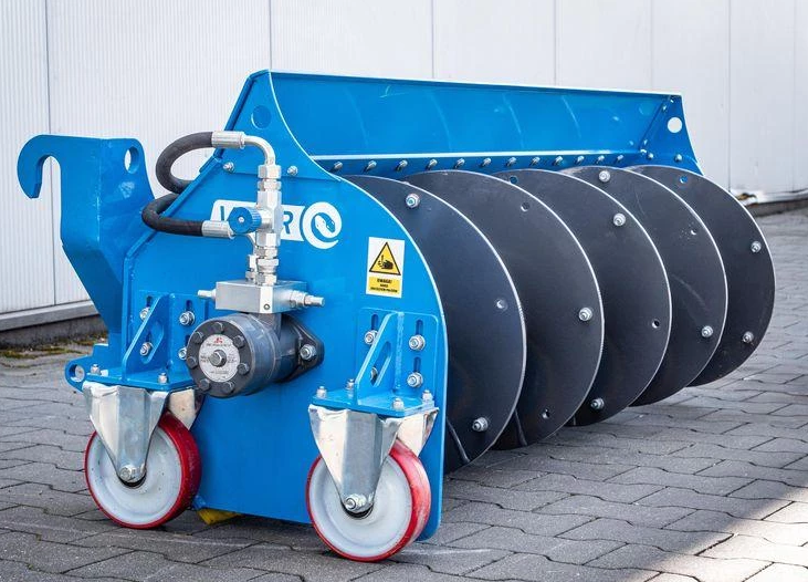 Построен на базе отвала, с установленным в передней части спиральным шнеком диаметром 47 см, толщиной шнека 8 мм, рабочей шириной 1,2, 1,6 или 2,0 метров ( в зависимости от модели). Транспортер оснащен очень прочной резиновой лентой для тщательной очистки поверхности кормового стола. Дополнительно на шнек могут устанавливаться лопатки, которые дополнительно усиливают перемешивание и аэрацию корма. Машина приводится в движение гидравлическим двигателем производительностью 125 см3, , а требуемая мощность для работы составляет 10 литров/мин., благодаря чему подталкиватель может работать практически с любым транспортным средством, оснащённым гидравлической насосом. Конструкция подталкивателя кормов оснащена компонентами высочайшего класса, дополнена самыми прочными гидравлическими шлангами, тремя полиуретановыми колесами для повторения контура кормового стола, способными выдерживать давление свыше 300 кг.
