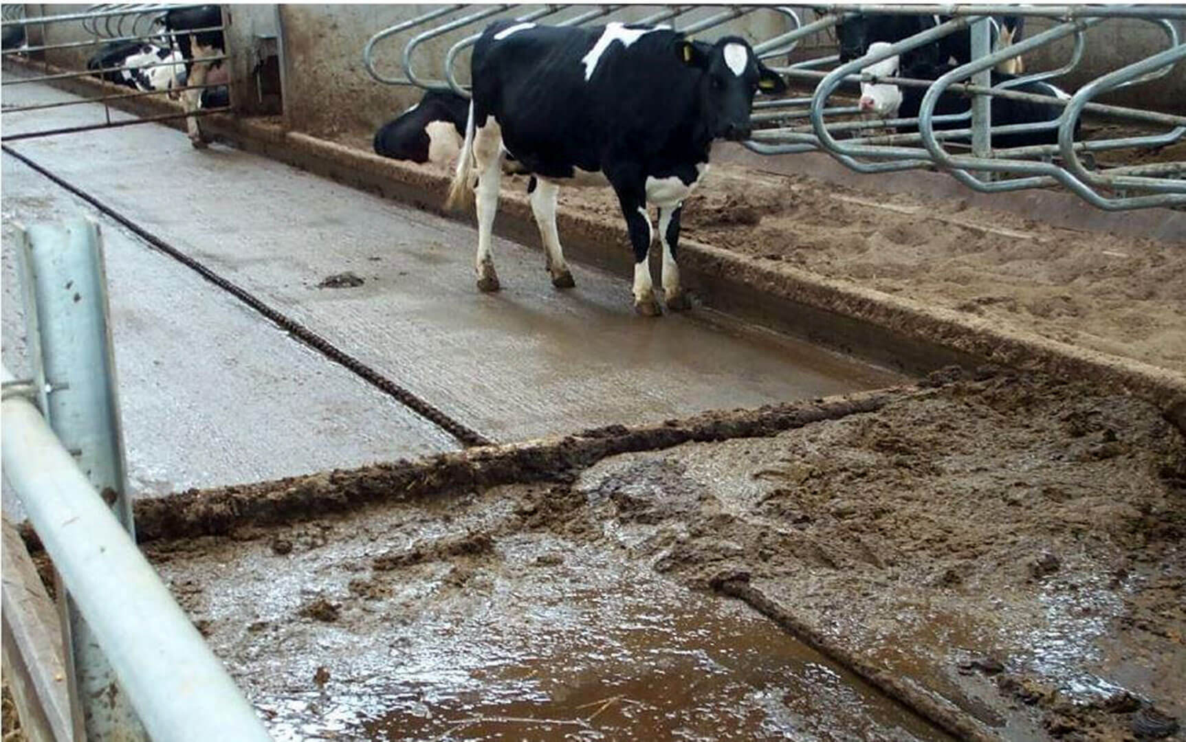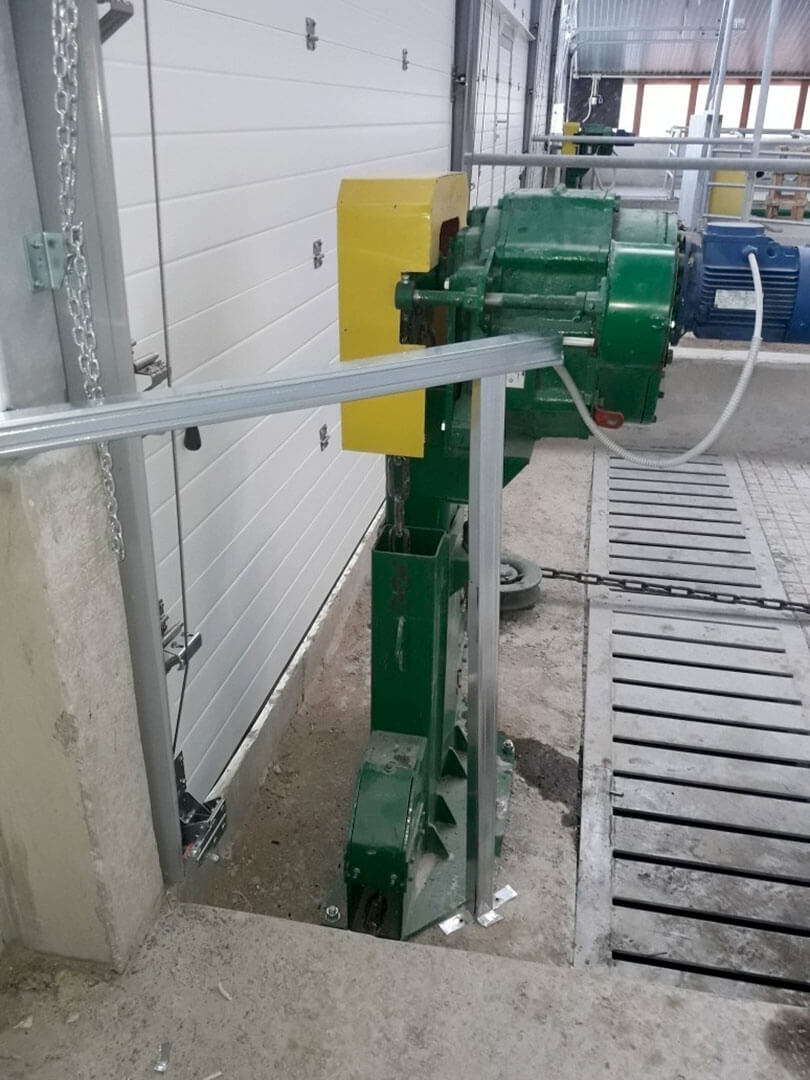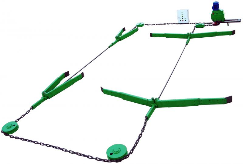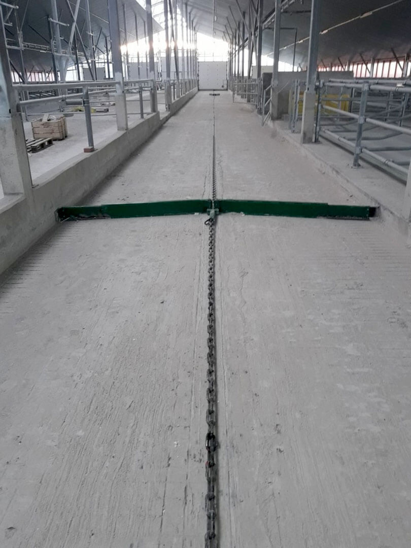 Установка предназначена для уборки навоза крупного рогатого скота из открытых навозных проходов при беспривязном боксовом содержании скота. Скрепер комплектуется четырьмя рабочими органами, что позволяет осуществить выгрузку навоза, как из торца, так и середины помещения.