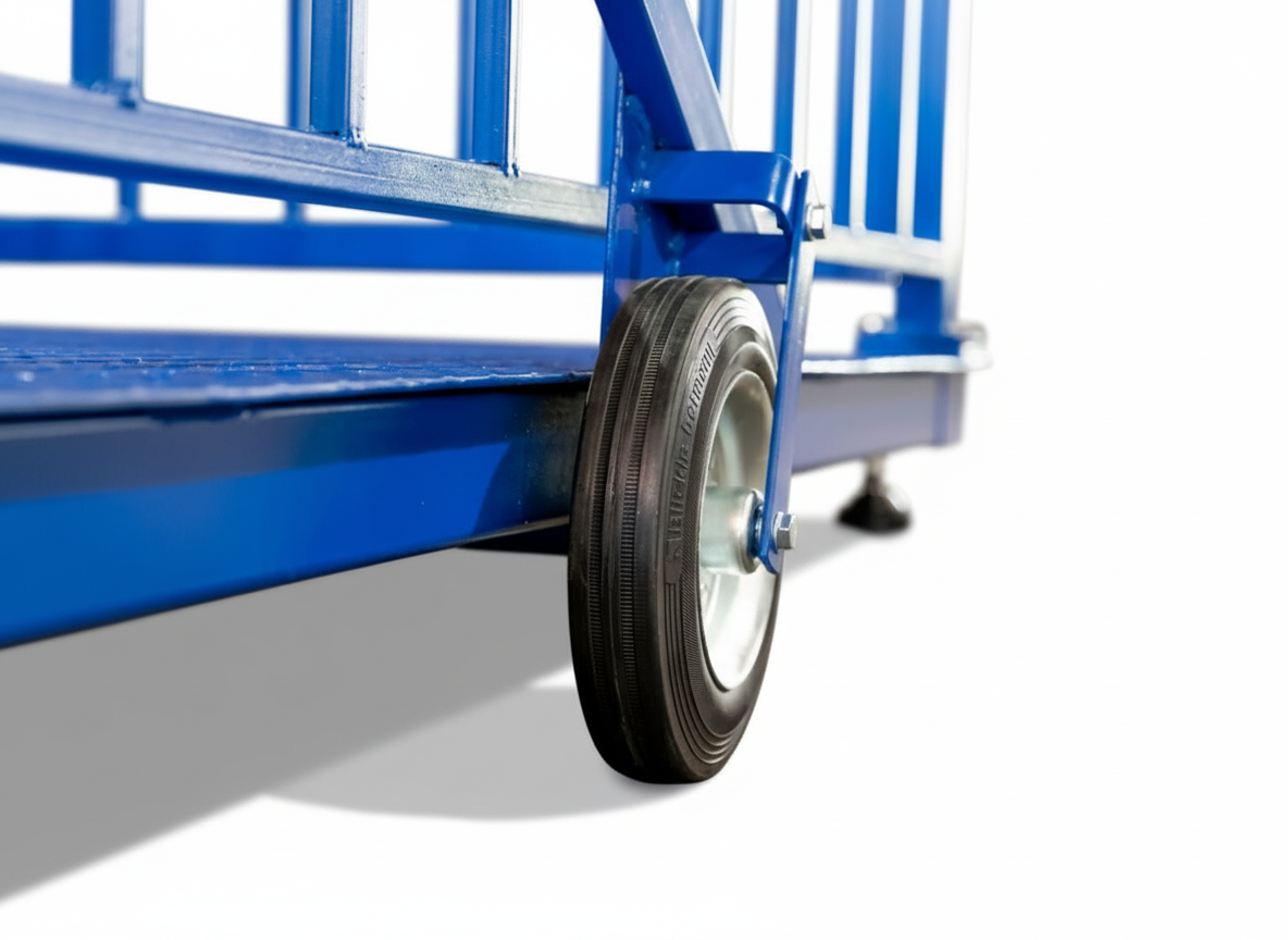 Конструкция состоит из двух колес с рычагами, весы можно перемещать по территории комплекса, при этом достаточно усилий только одного человека. Колеса быстро и легко складываются, никак не влияя на точность измерений. Такой подход обеспечивает повышение эффективности процесса взвешивания, способствует увеличению гибкости и производительности работ. Простота конструкции системы передвижения определяет ее высокую надежность.